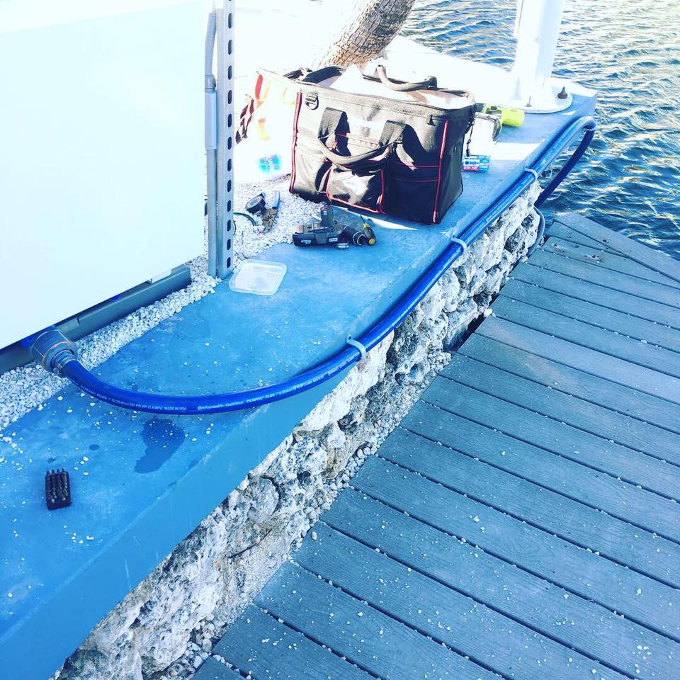 This property in Key Largo had an old blower PVC pipe combo marine bubble curtain that was ineffective and expensive to run when it worked. It stopped working before before hurricane Irma leading the owners to seek a better solution. With the air curtain being placed further in the canal and due to the depth of about 12-15 feet we were able to space the diffusers out further resulting in less equipment and less CFM demand. The property is very happy with the equipment install and overall performance.